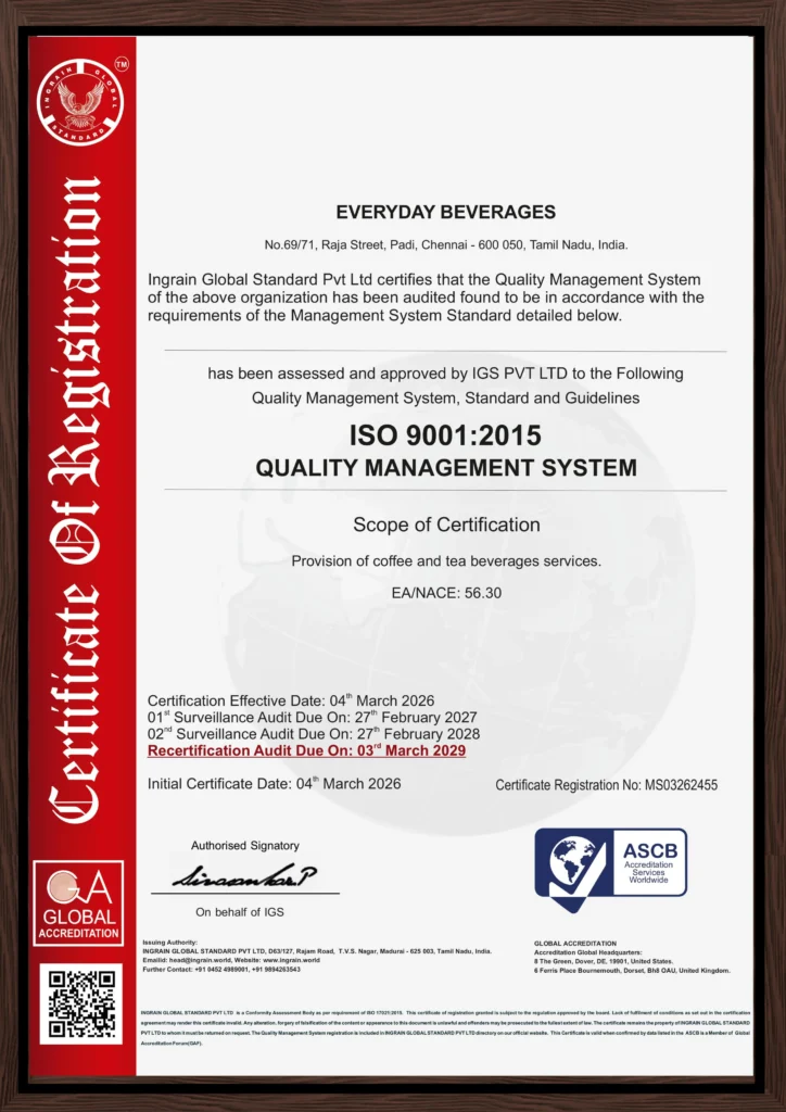 Everyday Beverages is your one-stop destination for premium coffee and tea vending solutions. Since 2000, we’ve served commercial spaces, factories, large scale industries, IT companies, corporate offices, coffee shops, canteens and educational institutes across Chennai, Bangalore, Hyderabad and Coimbatore, delivering convenience, quality and taste in every cup. In future, we plan to expand PAN India, we are redefining the beverage experience with our innovative and fully automatic vending machines.