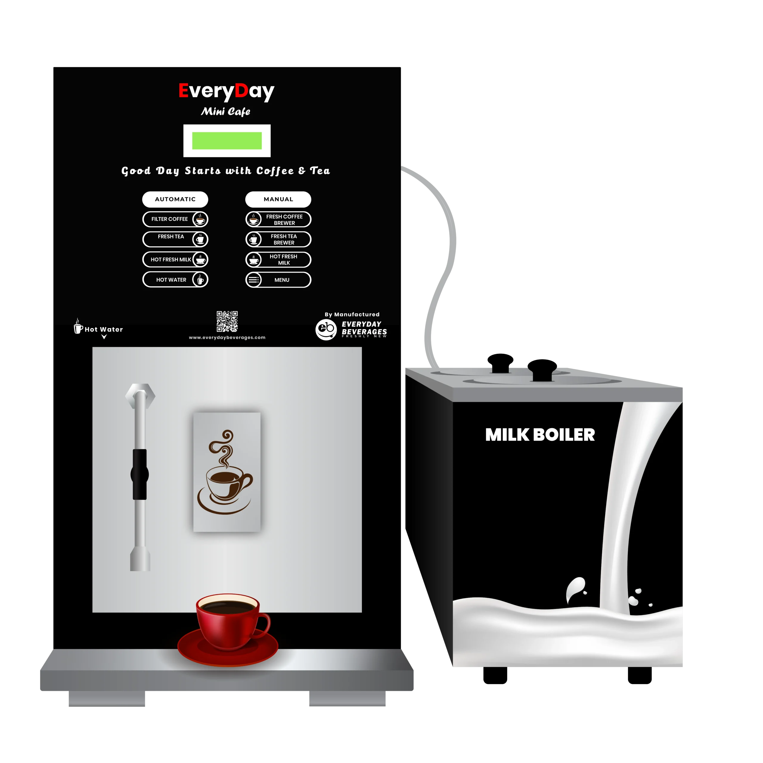 Everyday Beverages offers Mini Cafe machines, Live Vending machines, Android-based machines, and Bean-to-Cup coffee machines on rental, subject to availability.